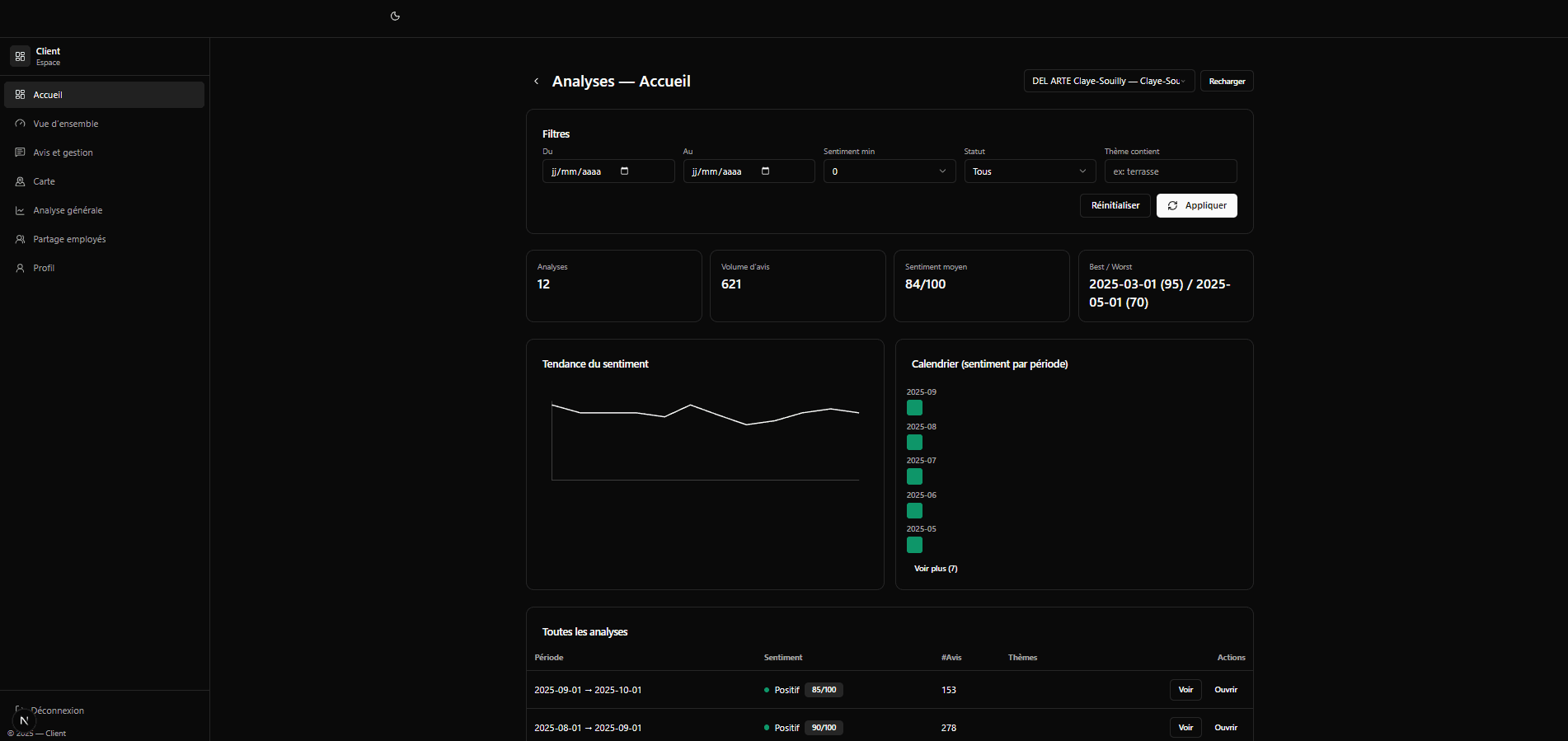 RestoBrain lit chaque avis, regroupe les signaux, propose la recommandation et suit elle vient à vous.